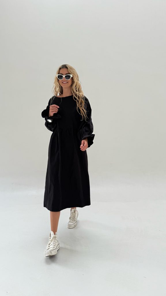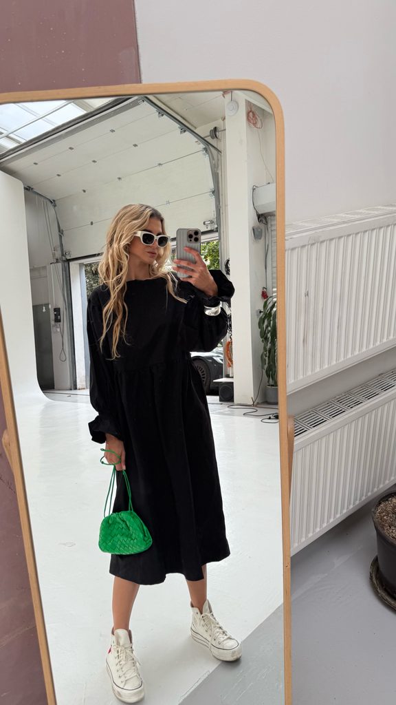 A unique dress with a beautiful cut and colour. The dress has a zip fastening and a gorgeous colour, with a cut that flatters every figure. The dress has an underskirt and looks great with biker boots as well as sandals.