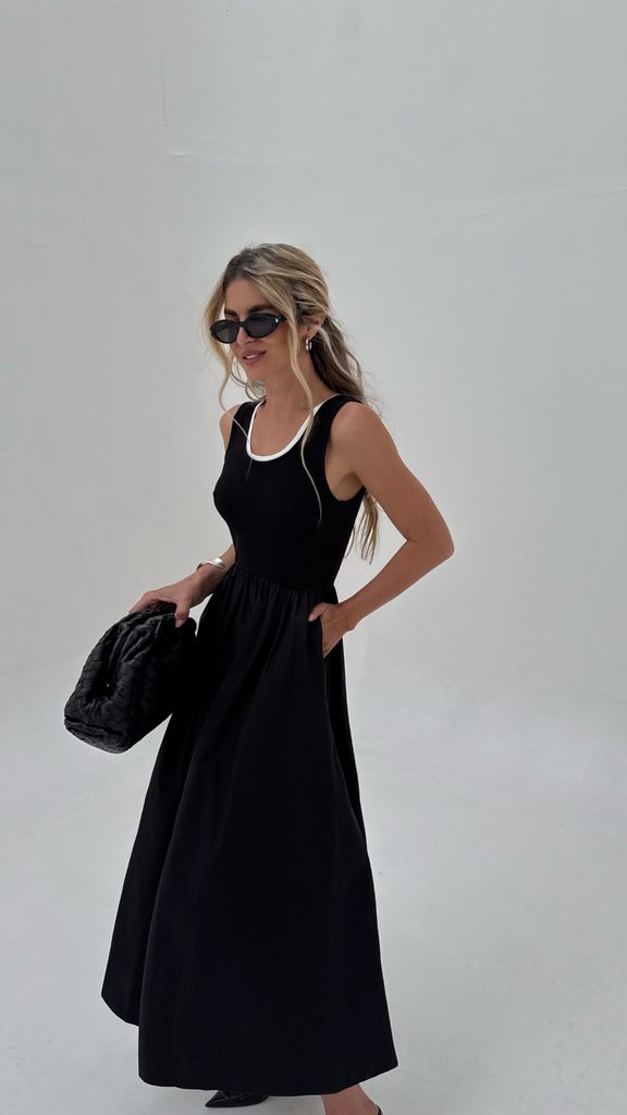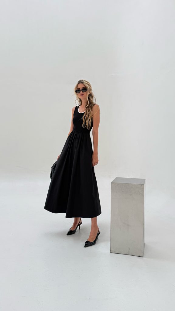 Unique black-and-white maxi dress with a perfect cut. It goes perfectly with boots, as well as trainers or sandals.
