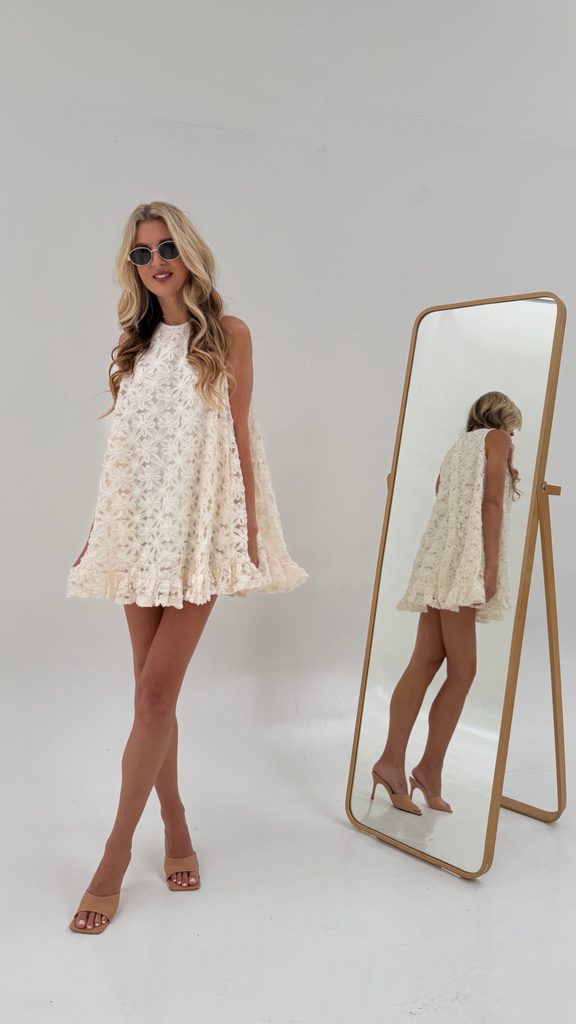 Cream Dress Cream Flower BeChick ❤ - Made with love