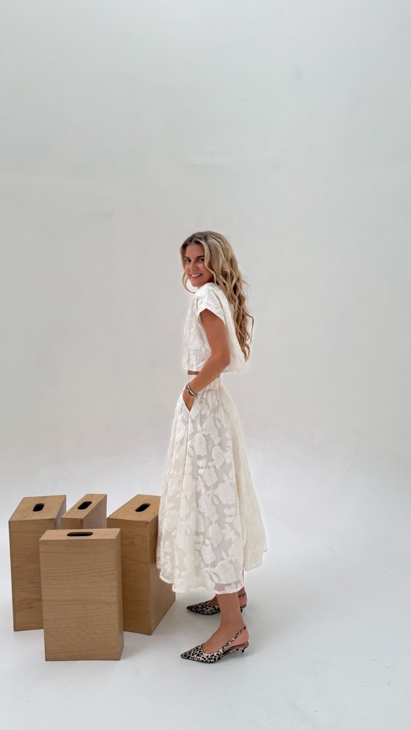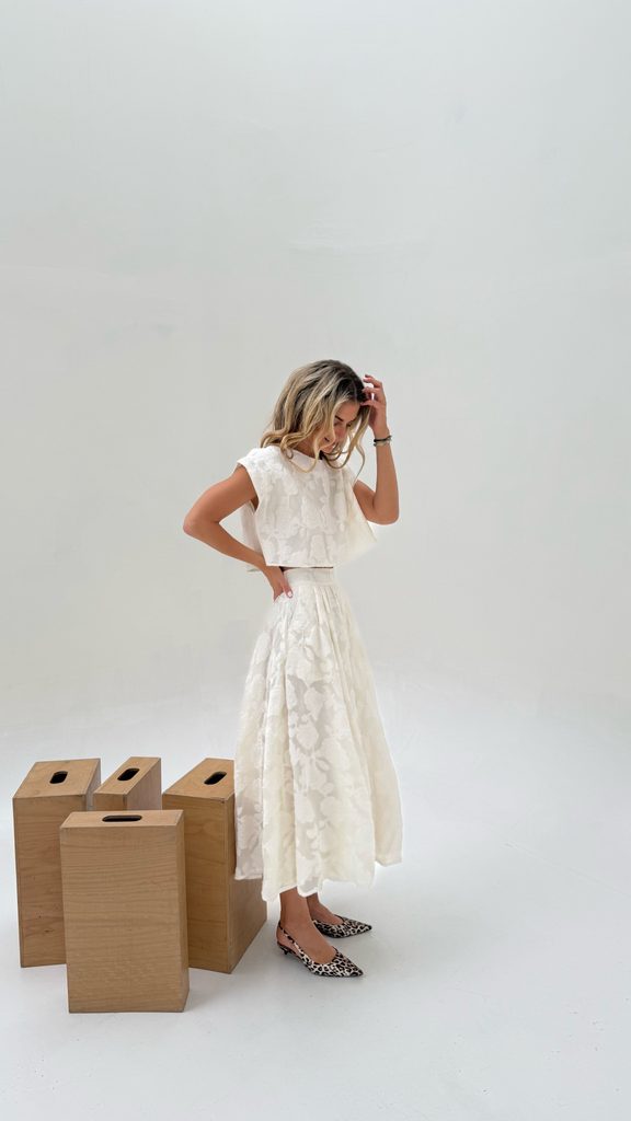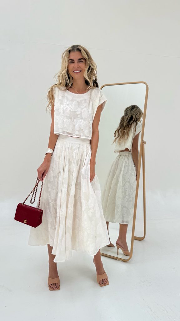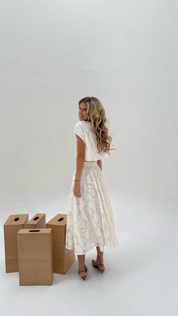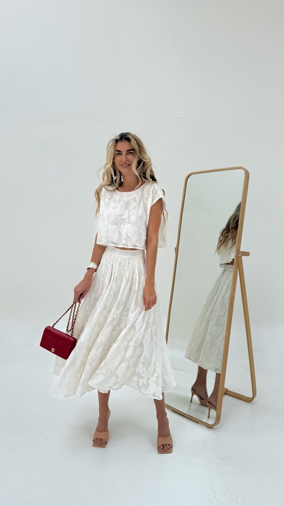 Flower Cream Top & Skirt Set BeChick ❤ - Made with love
