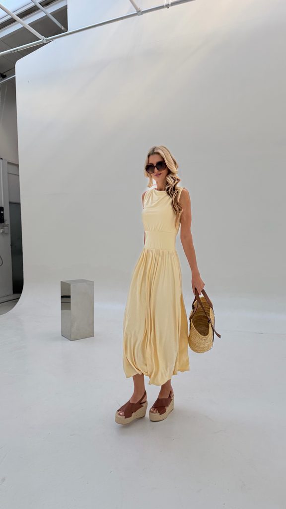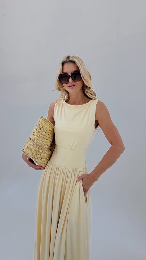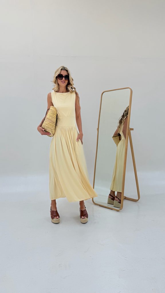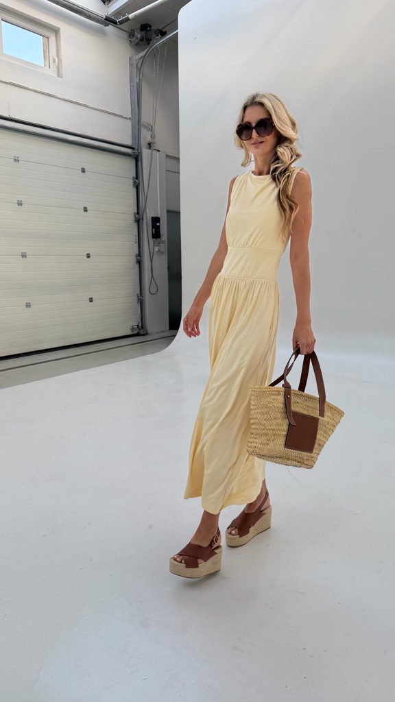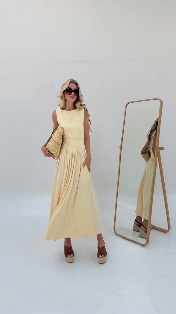 Unique vanilla maxi dress with a perfect cut. Great with both trainers and sandals.