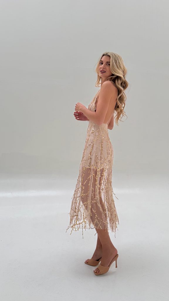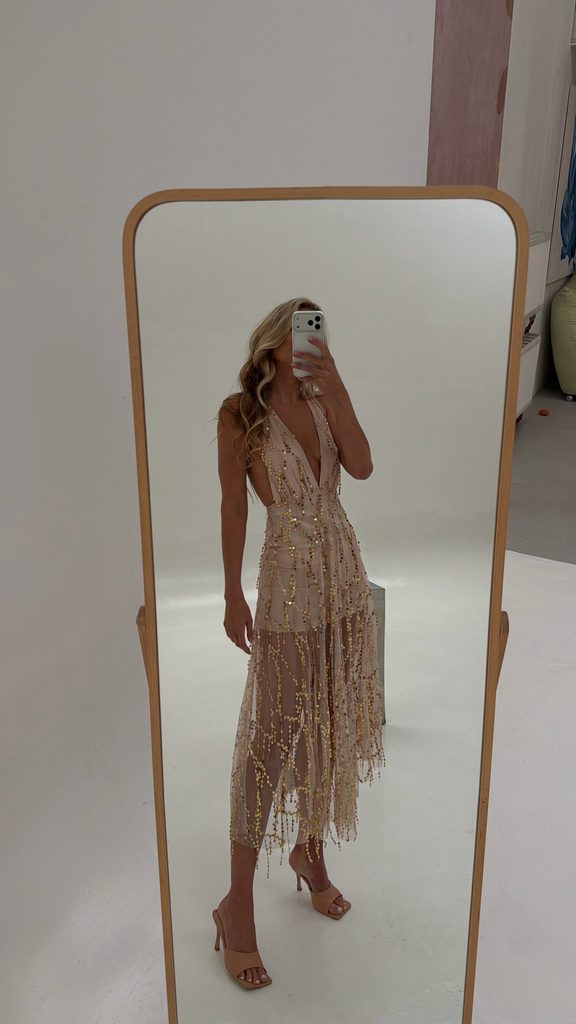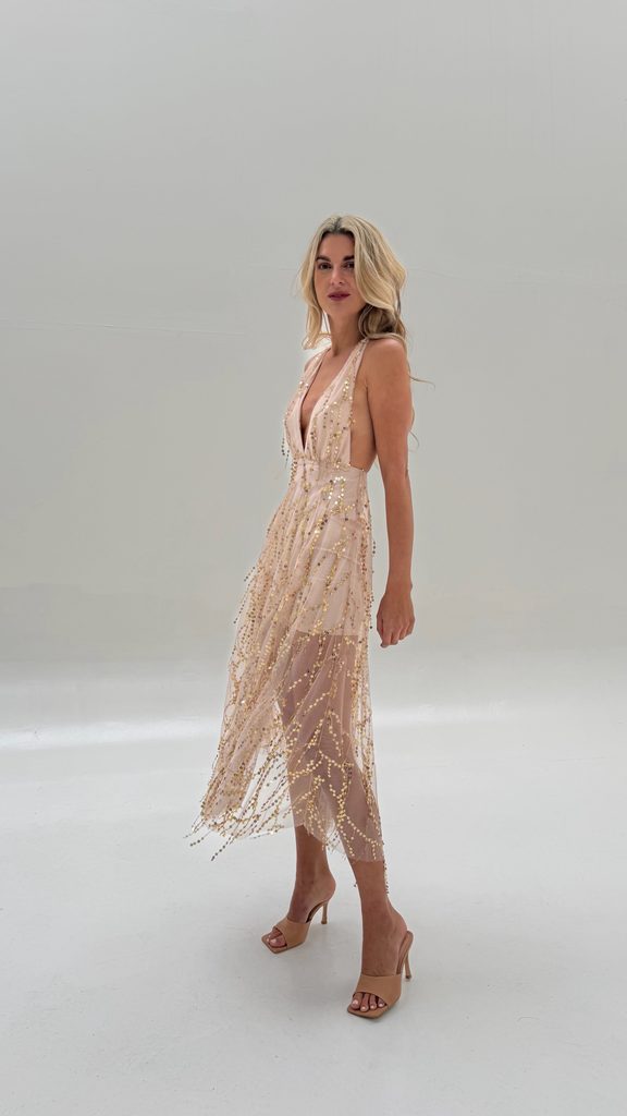 Unique nude dress with a perfect cut. Great with both trainers and sandals.