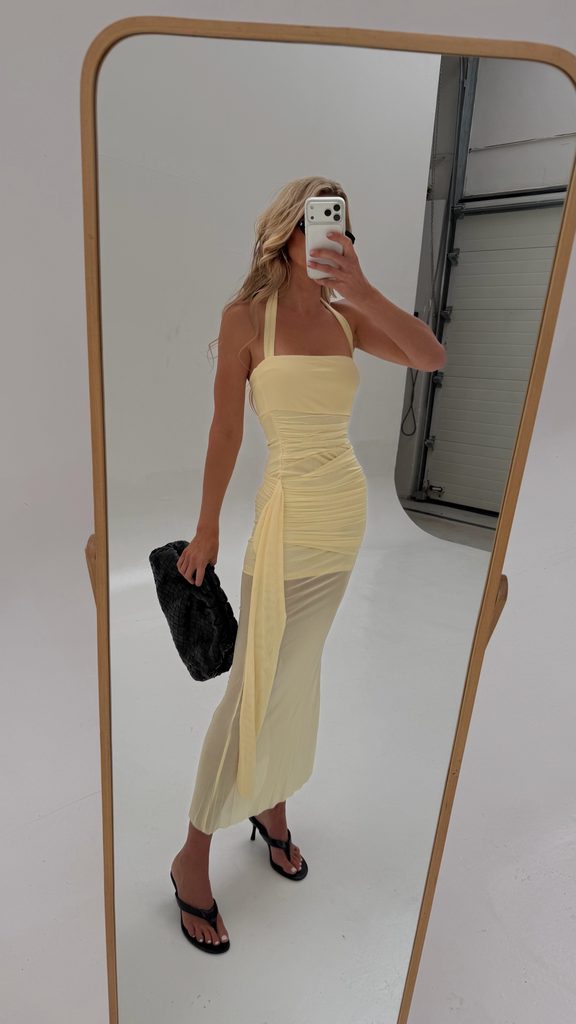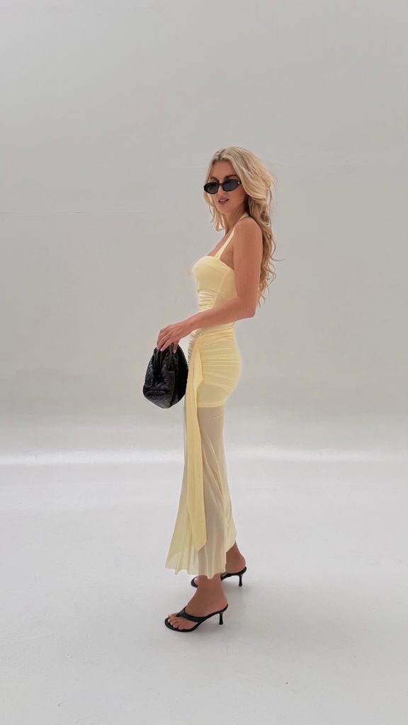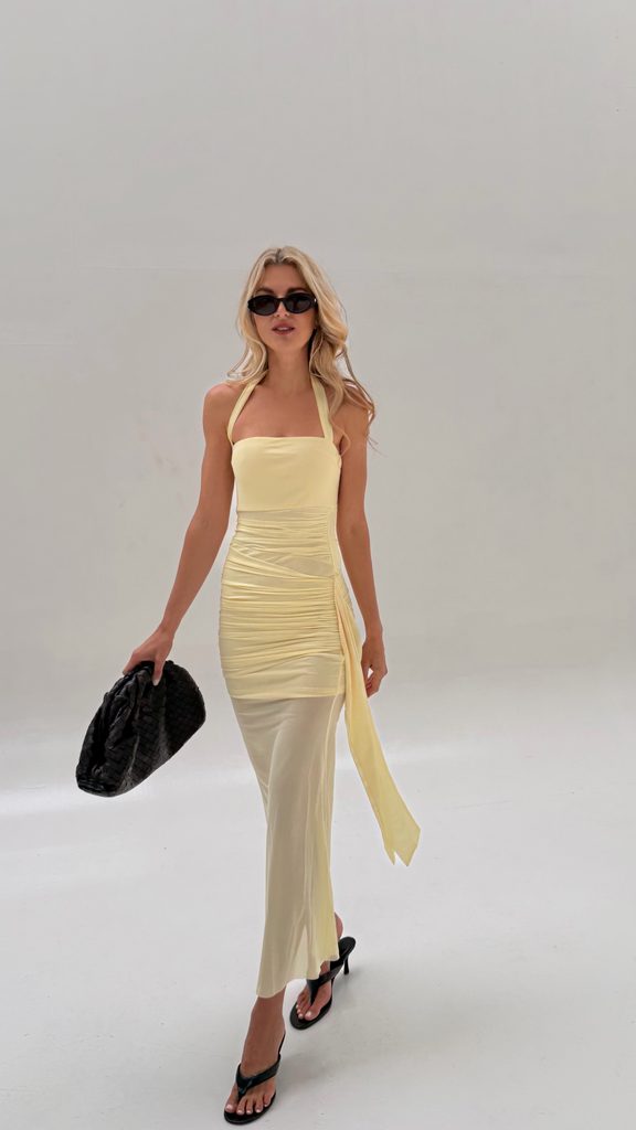 Unique vanilla maxi dress with a perfect cut. Great with both trainers and sandals.