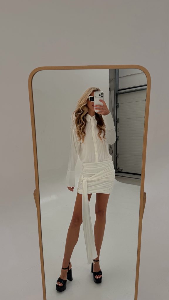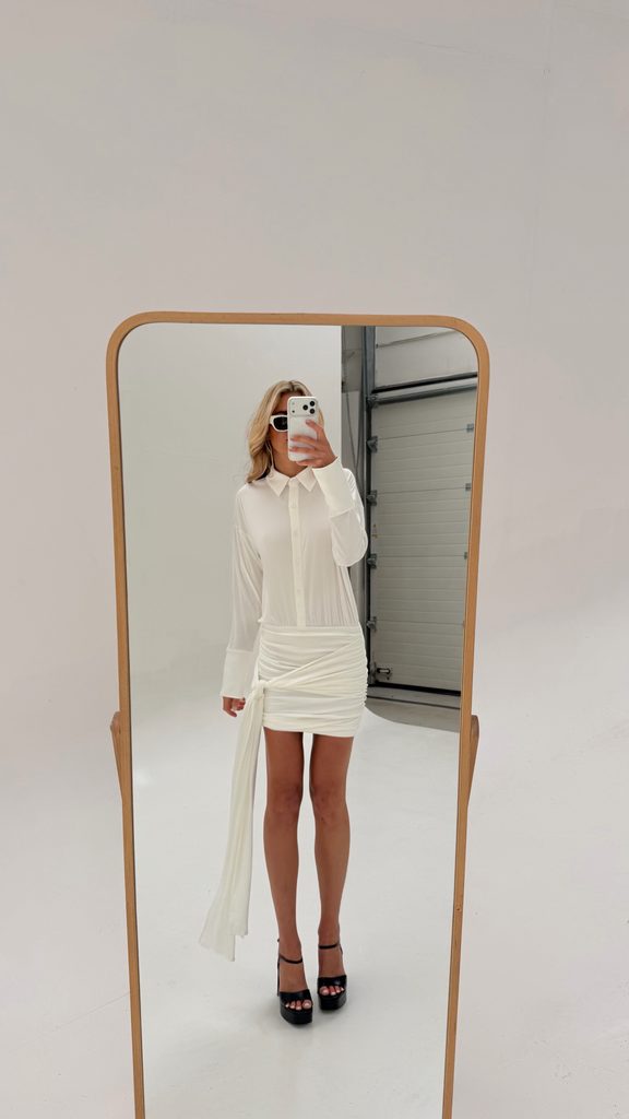 Unique white dress with a perfect cut. Great with both trainers and sandals.