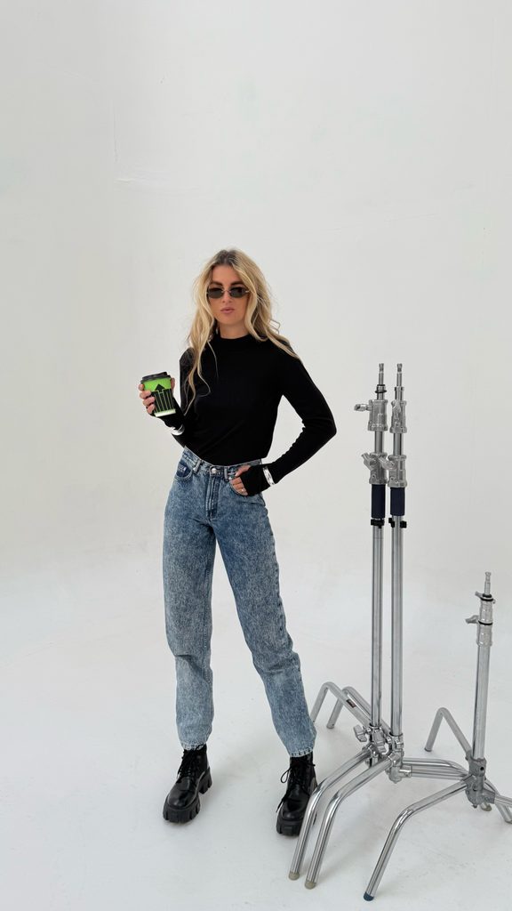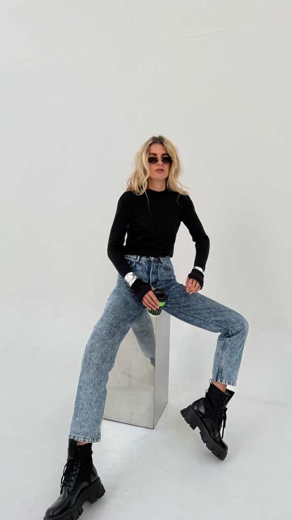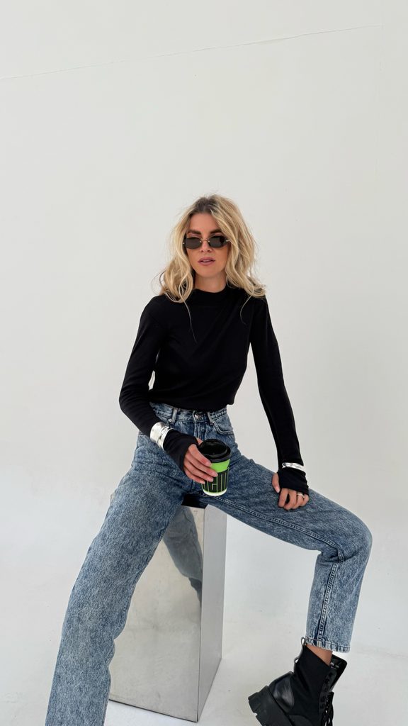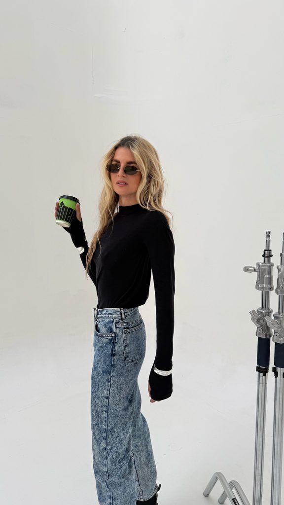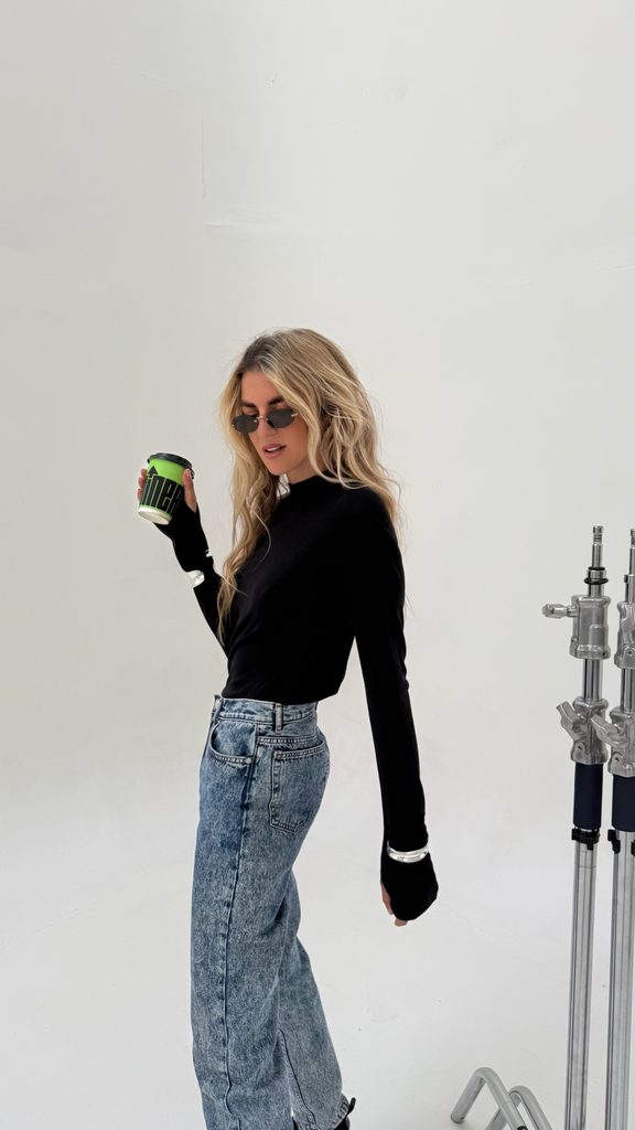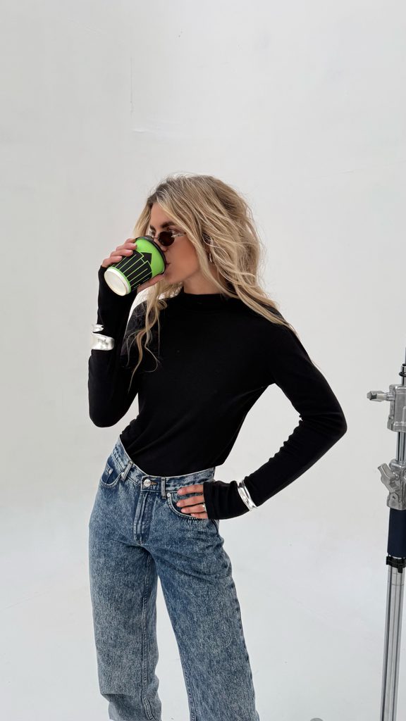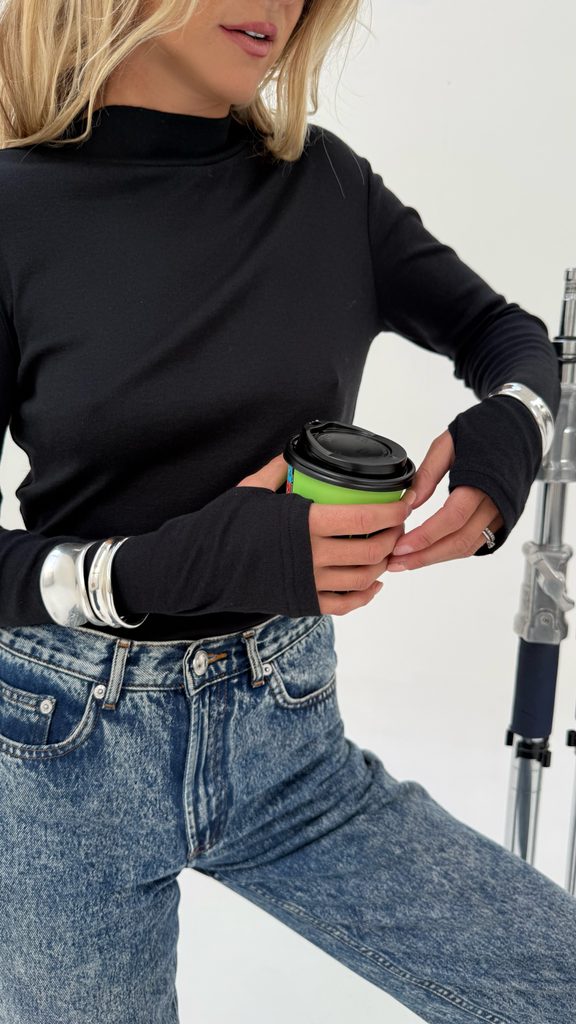 The perfect minimalist cotton roll-neck top with a thumb hole.