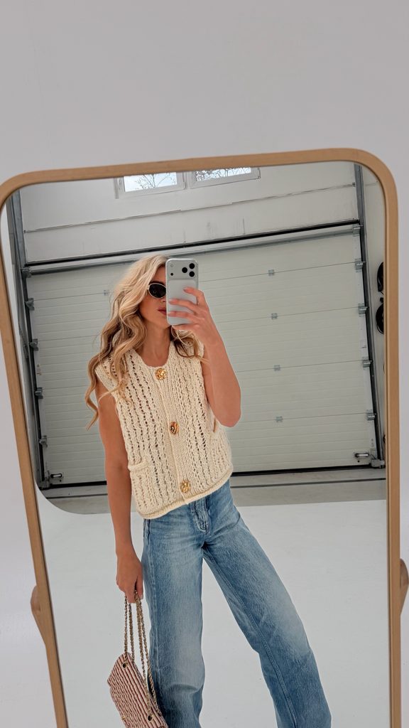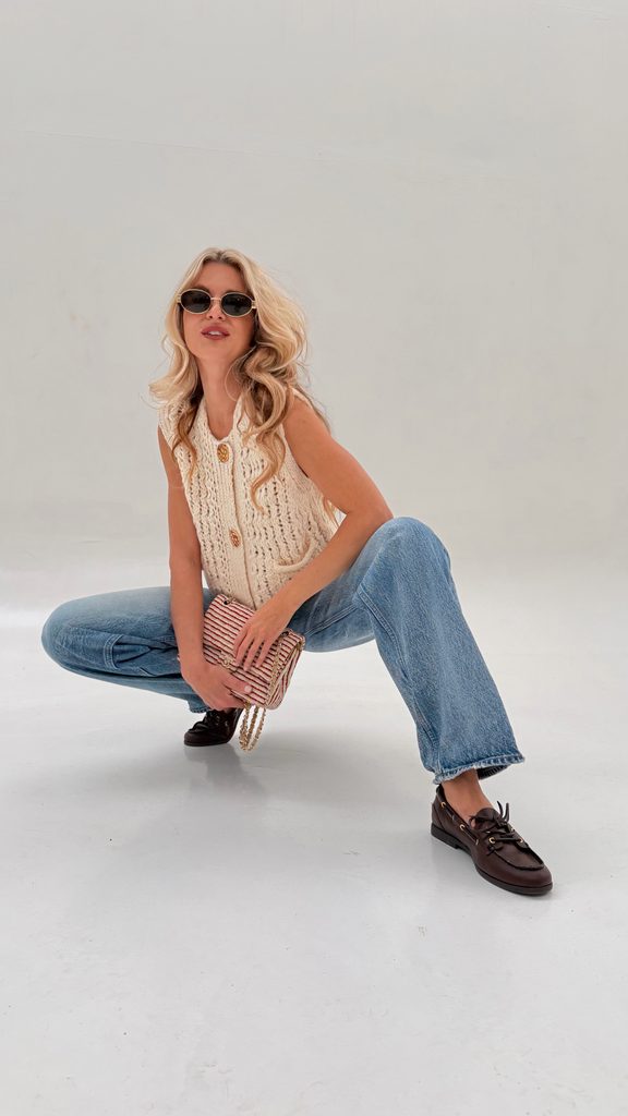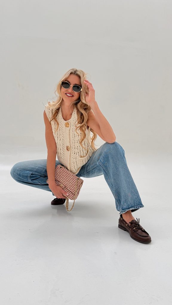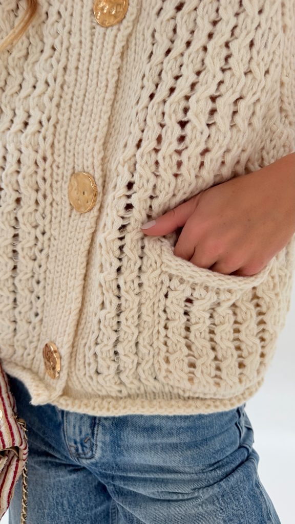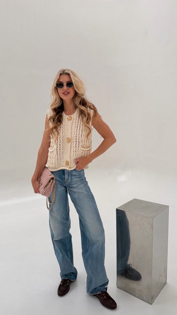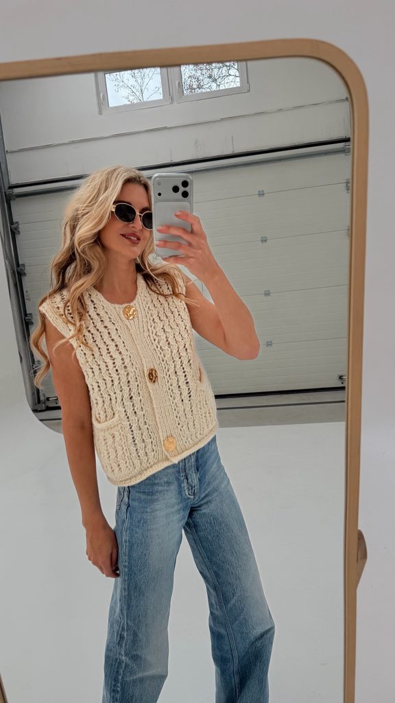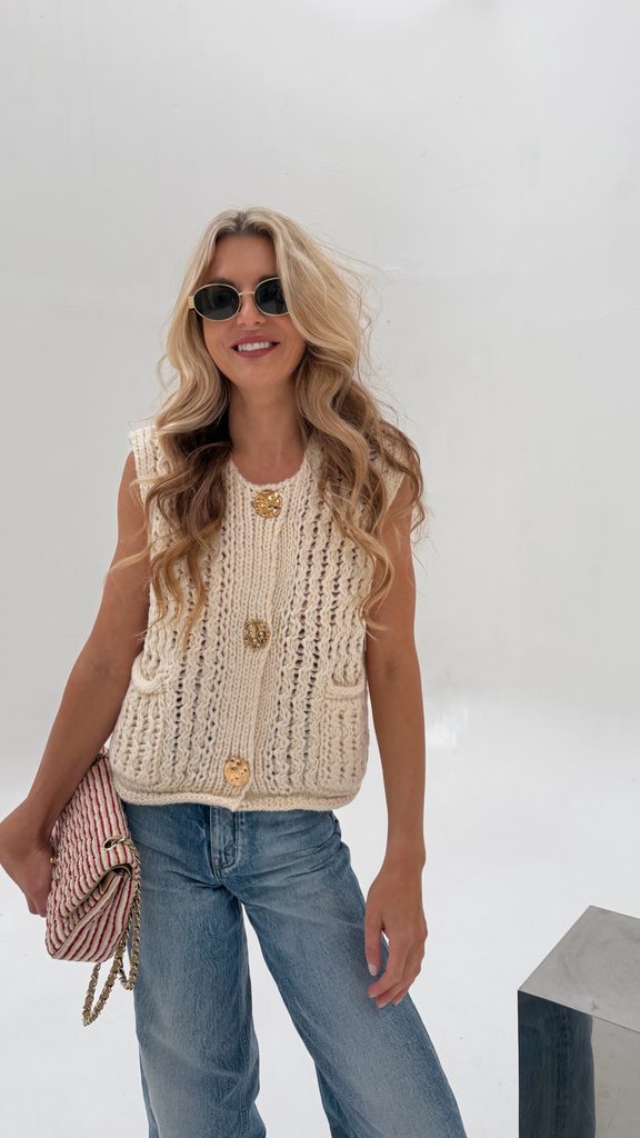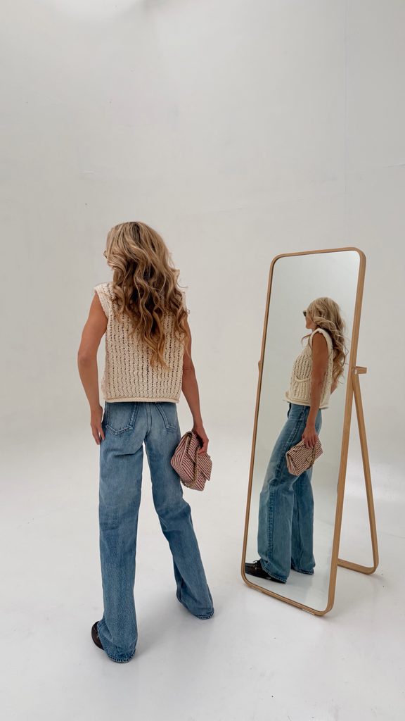 The beautiful cut goes well with jeans as well as skirts or trousers. Wear it on its own or over a shirt.