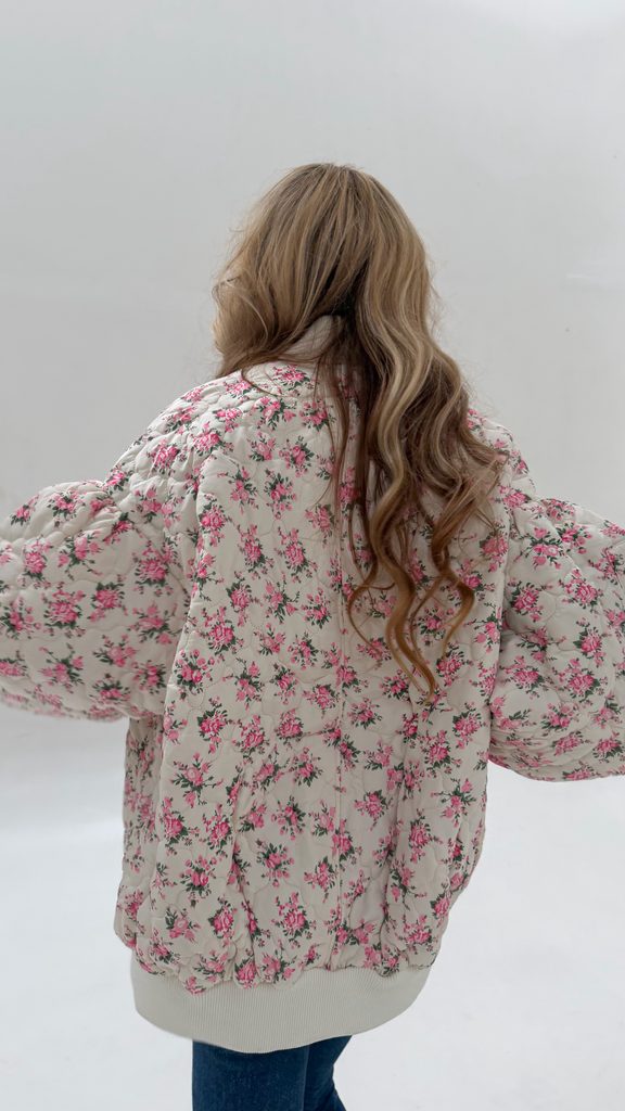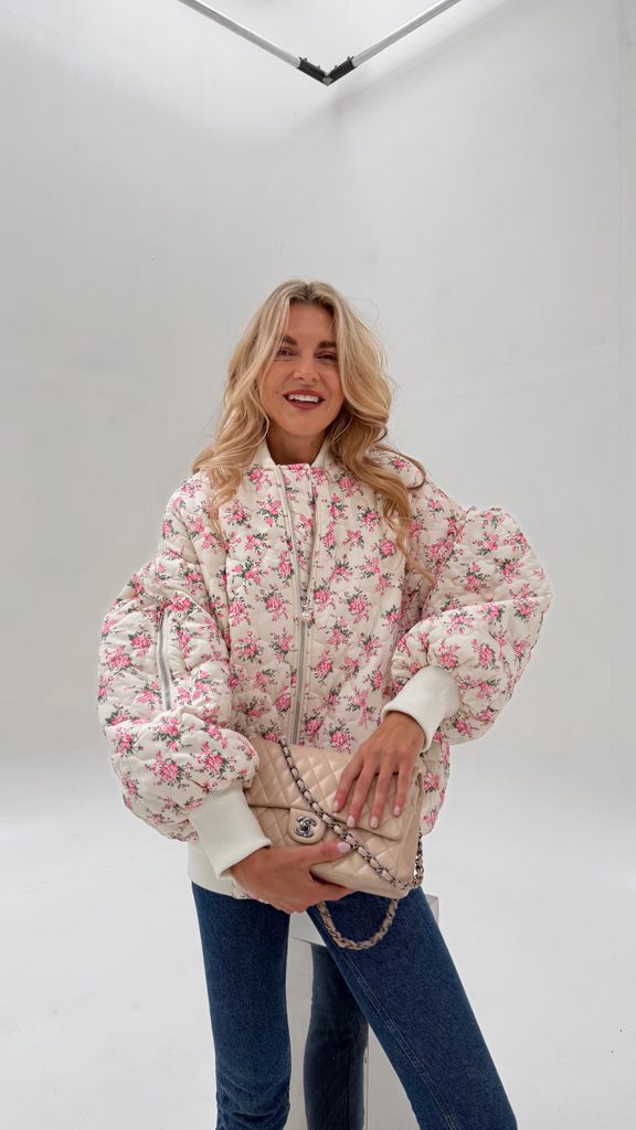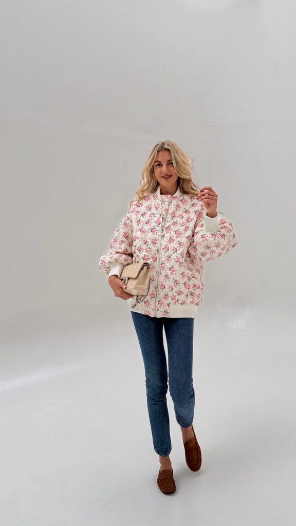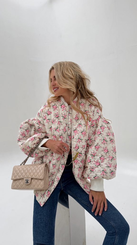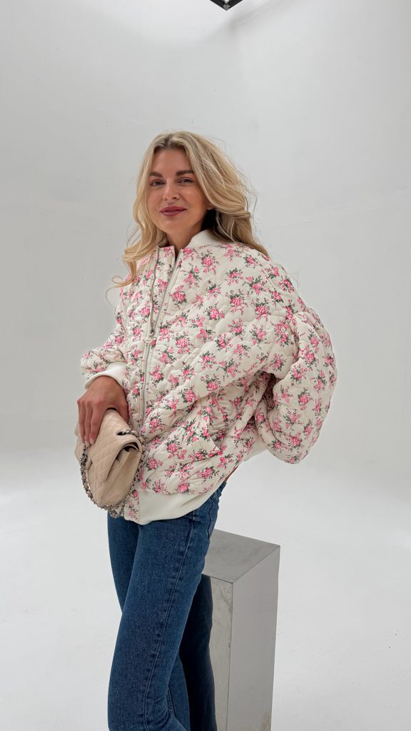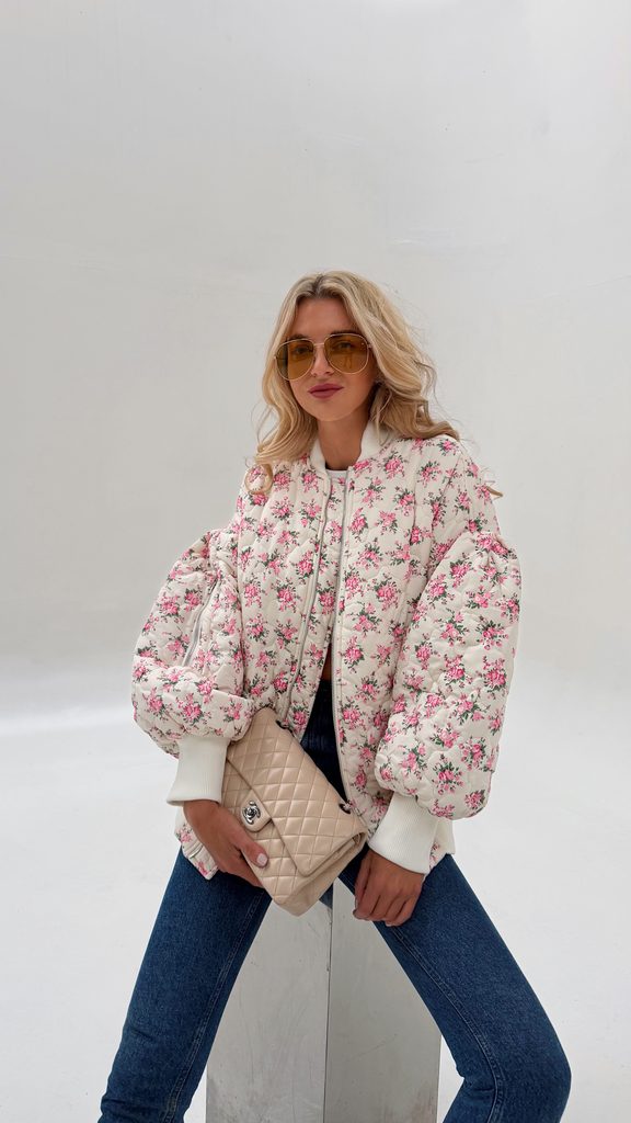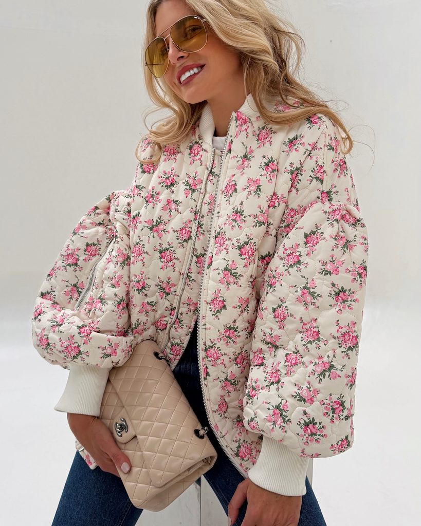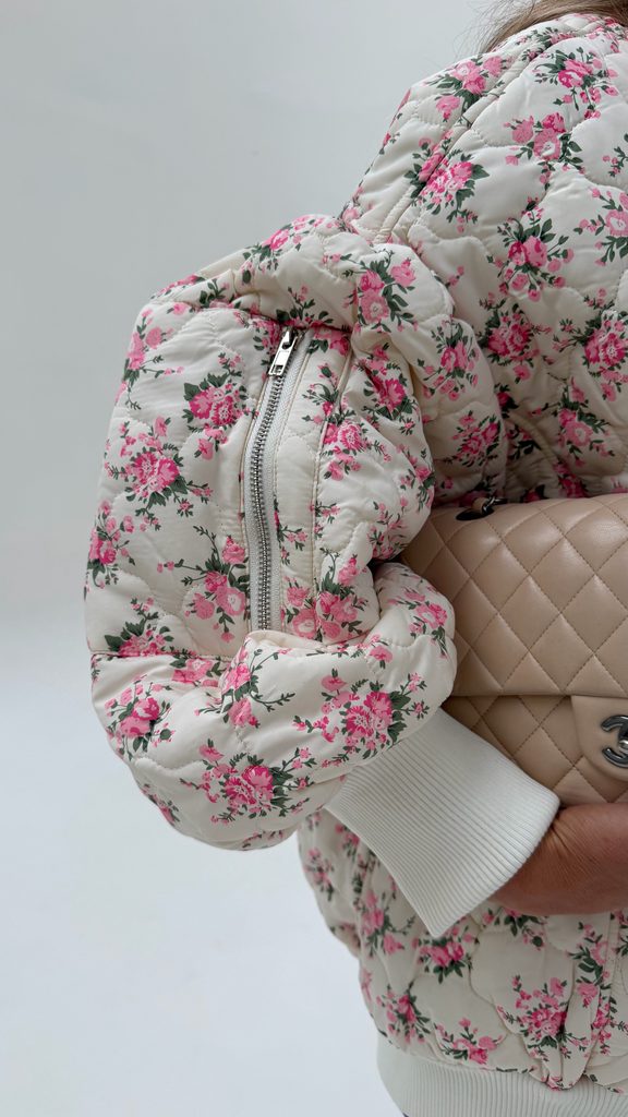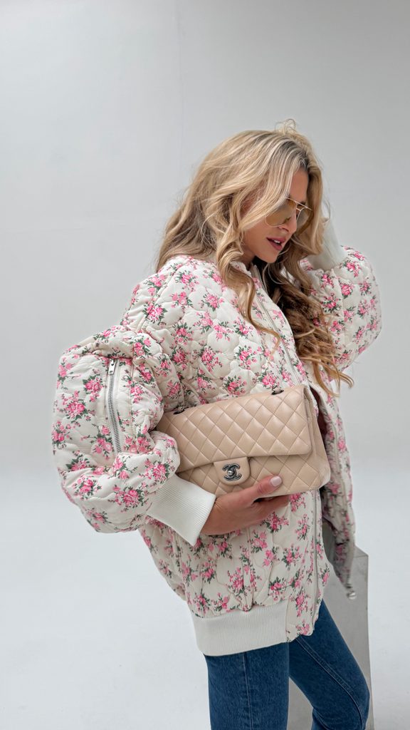 White quilted bomber Flower BeChick ❤ - Made with love
