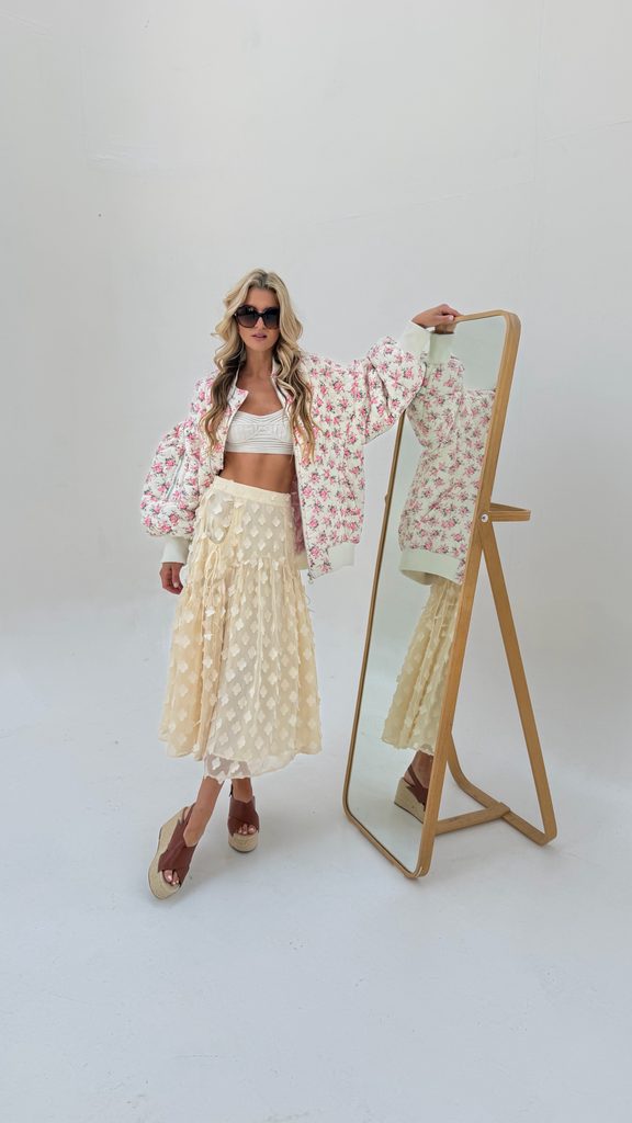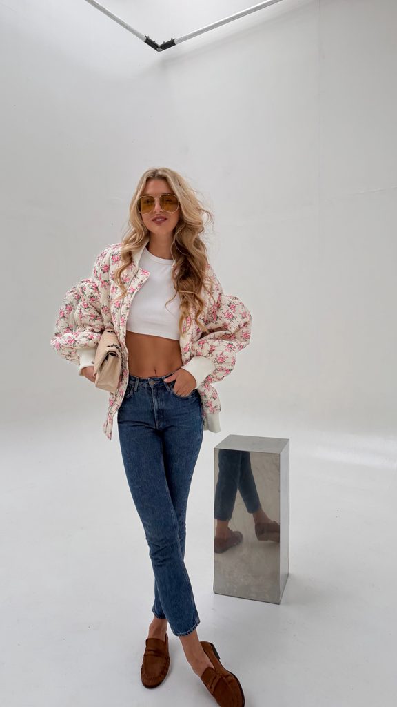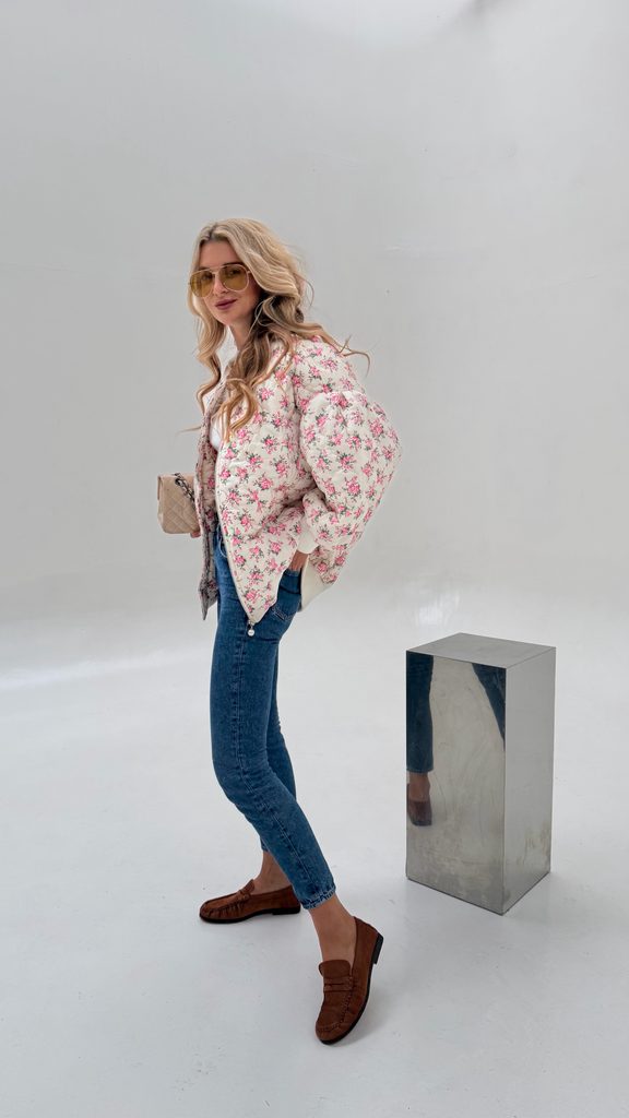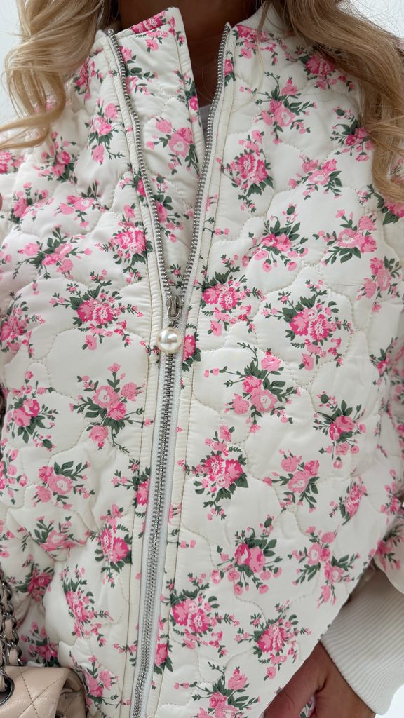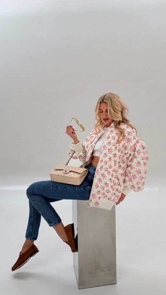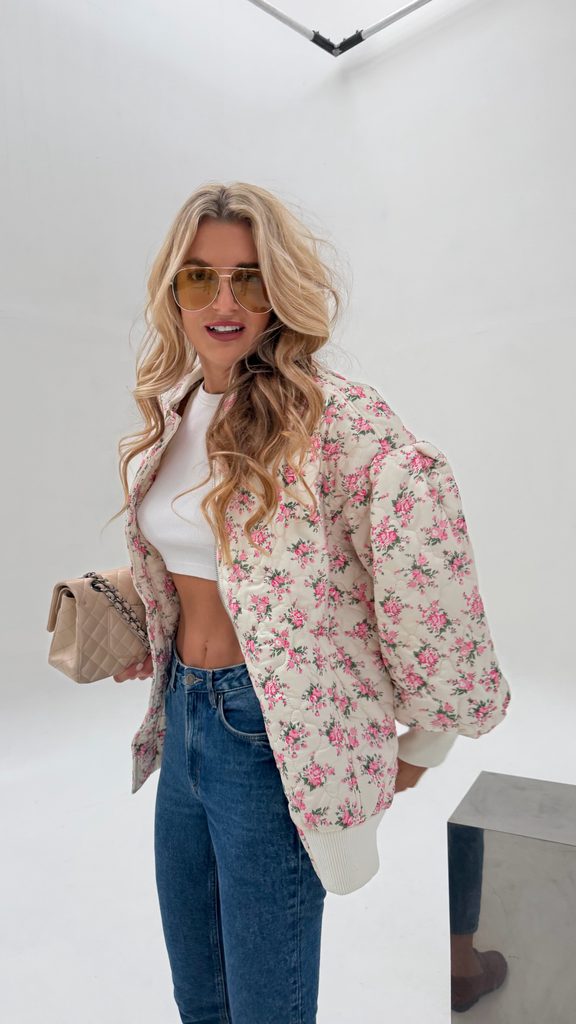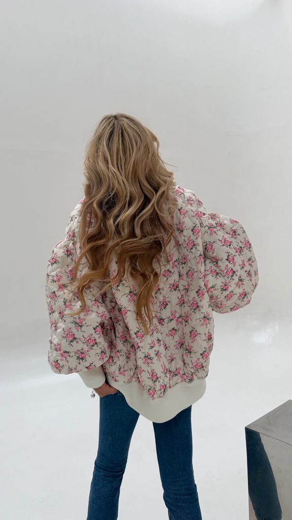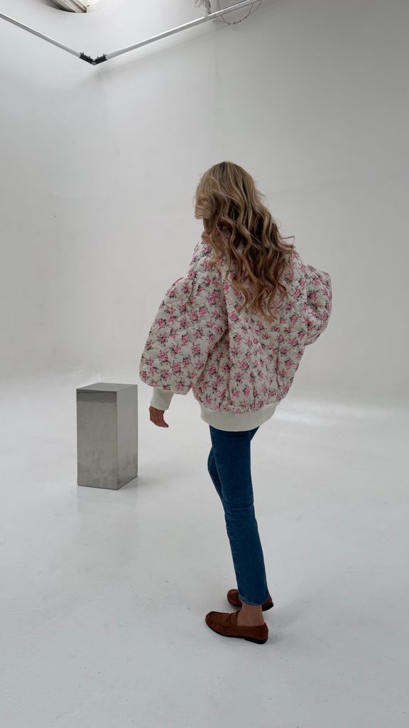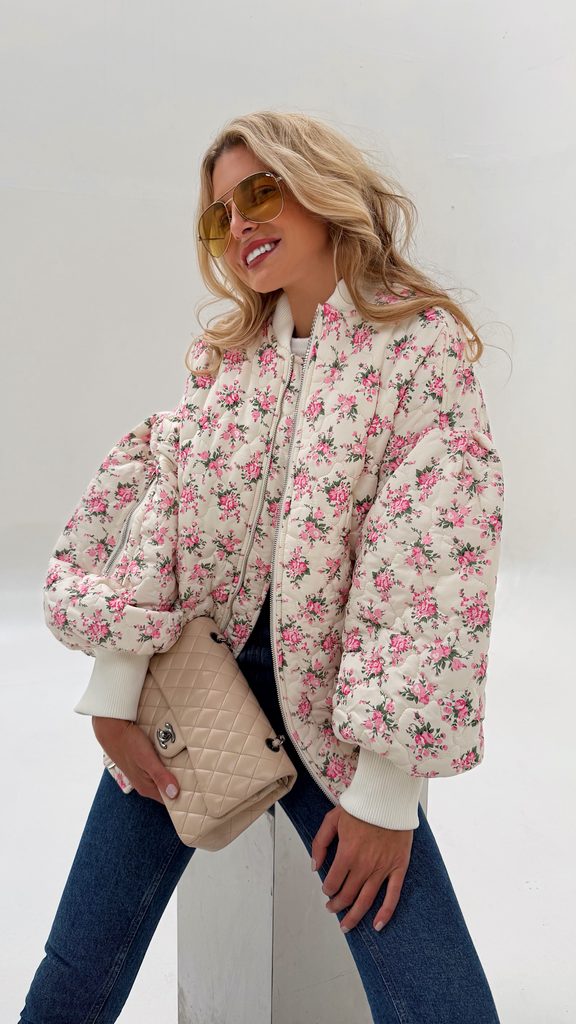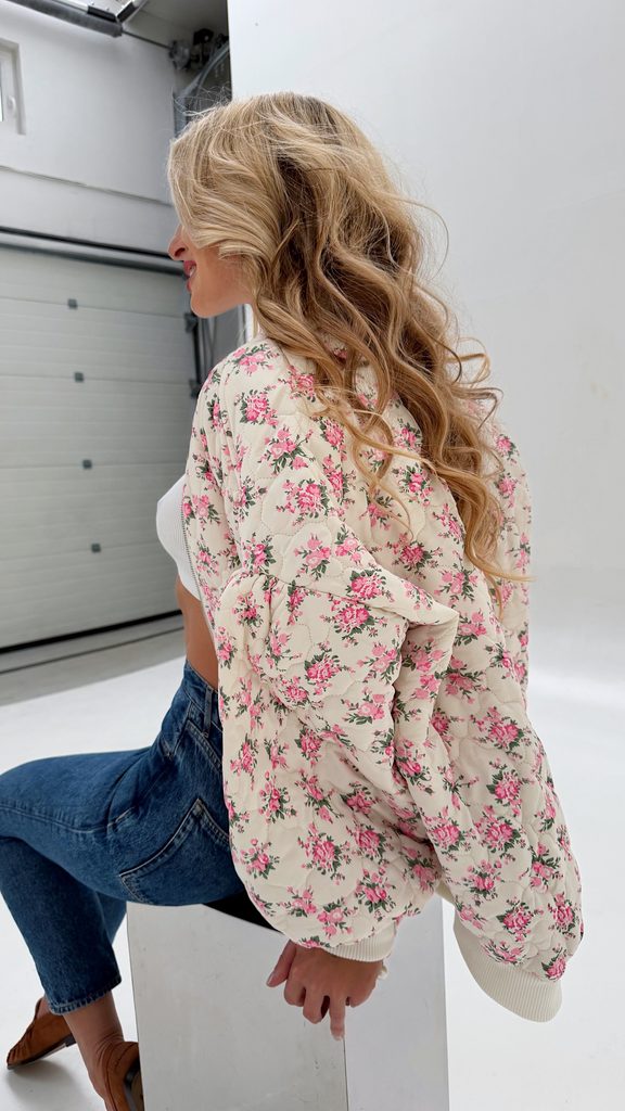 White quilted bomber Flower BeChick ❤ - Made with love