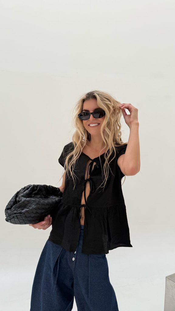 Black Cotton Bow Top BeChick ❤ - Made with love