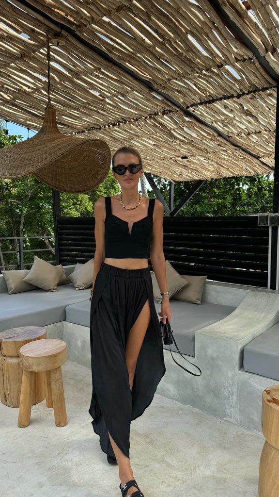 Black Wire crop top in a modern cut, ideal under basic tops.