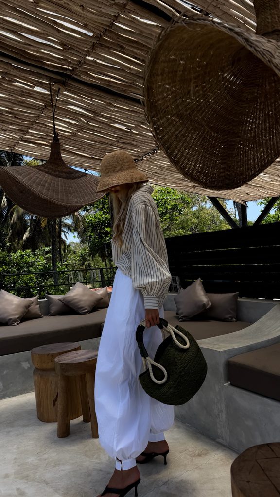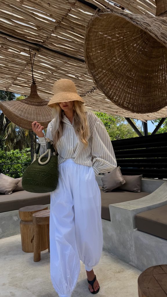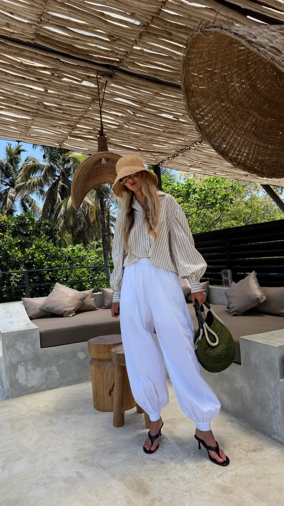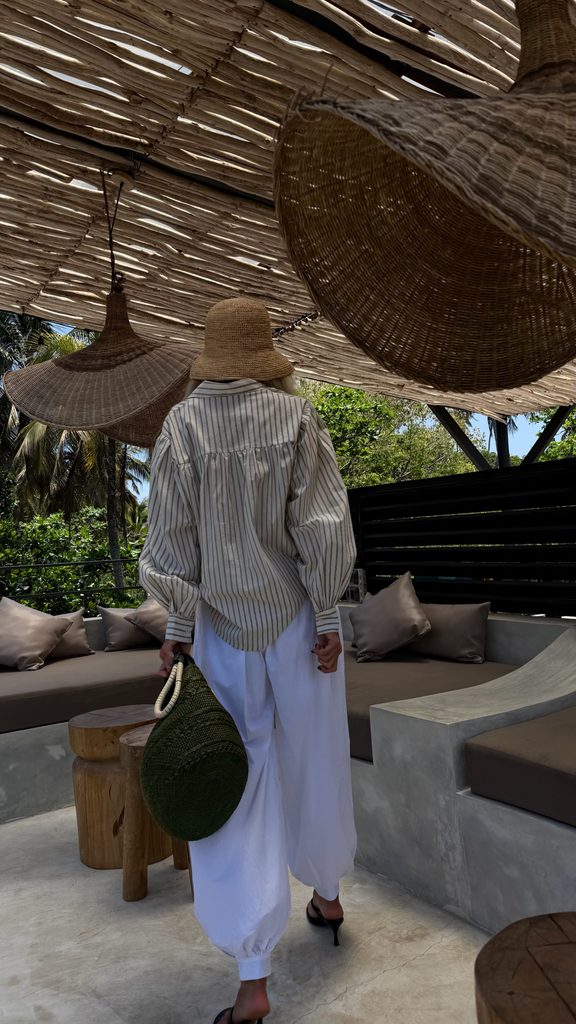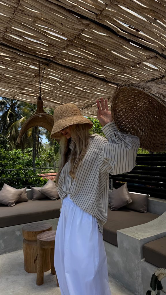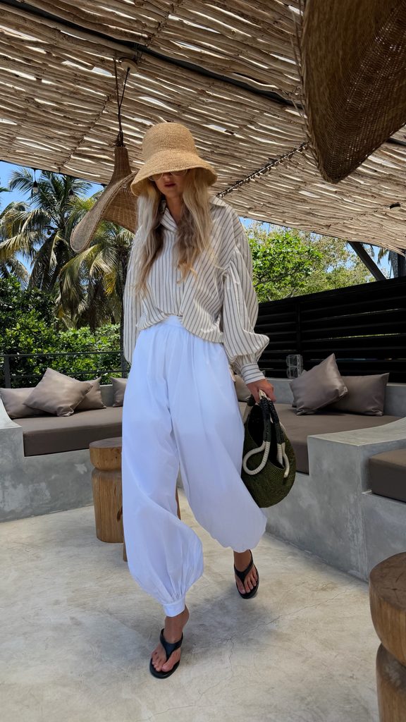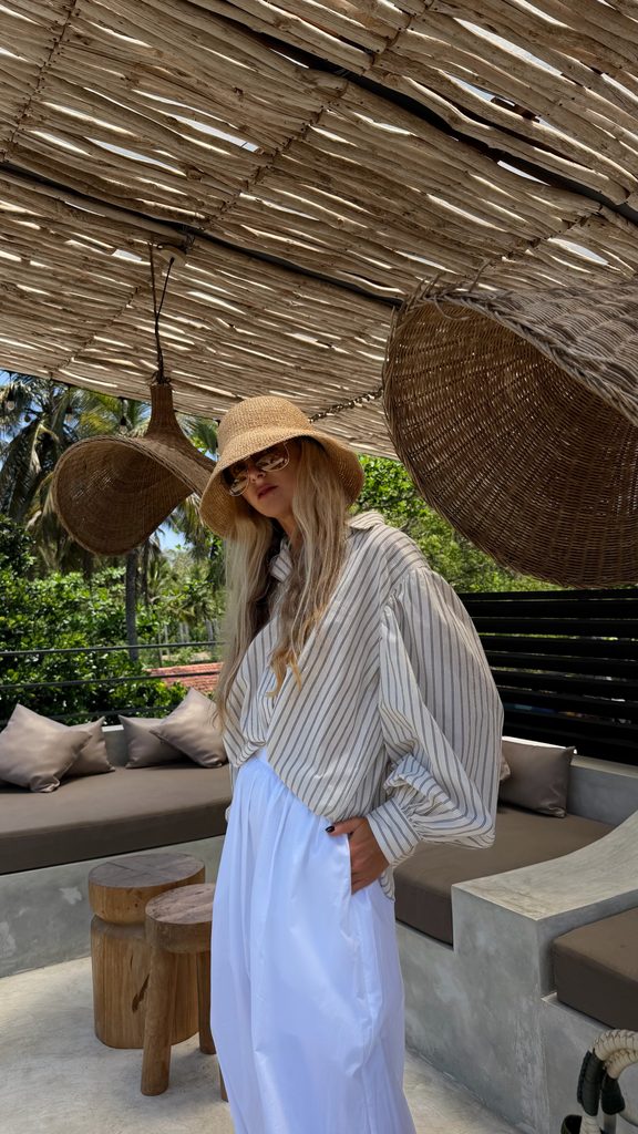 Minimalist white Malibu cotton shirt.
