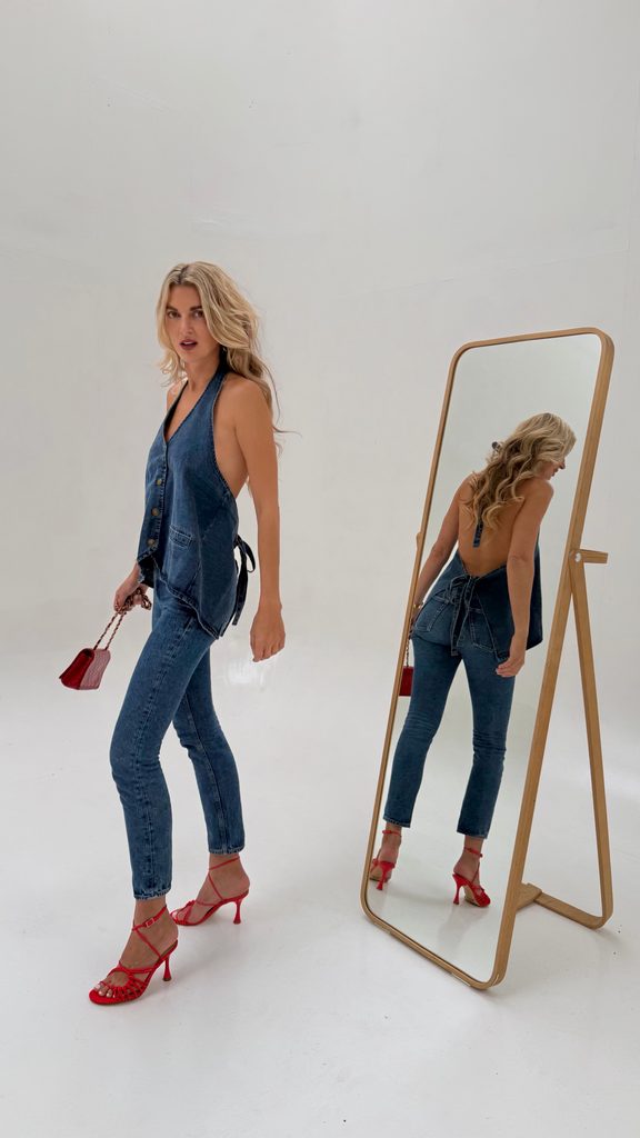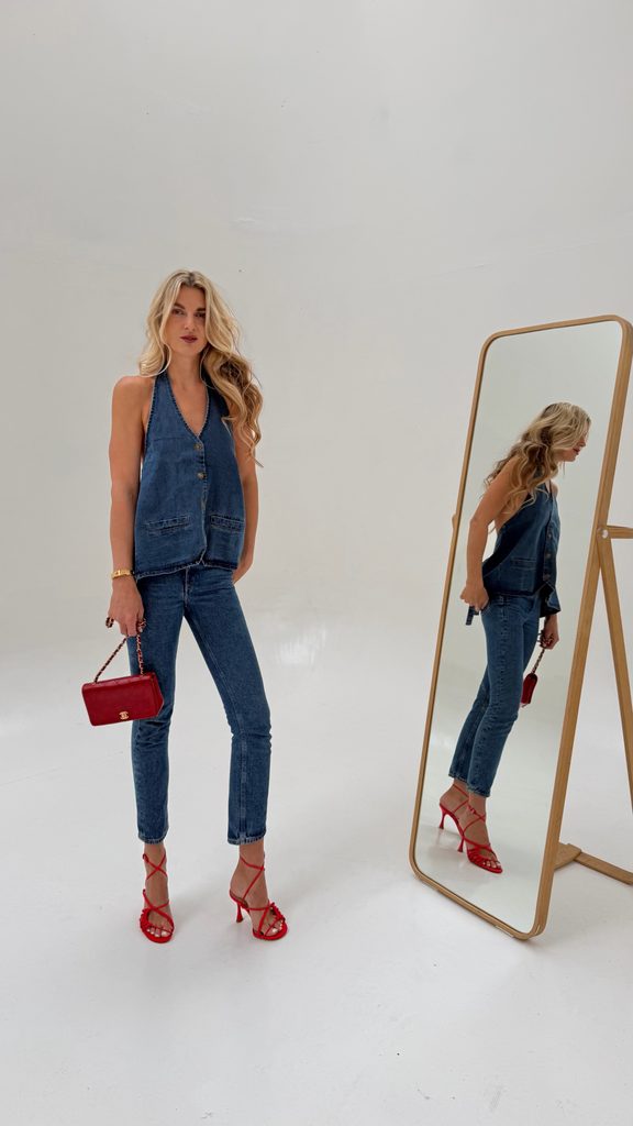 You can style the cotton top with a skirt or shorts, or with jeans.