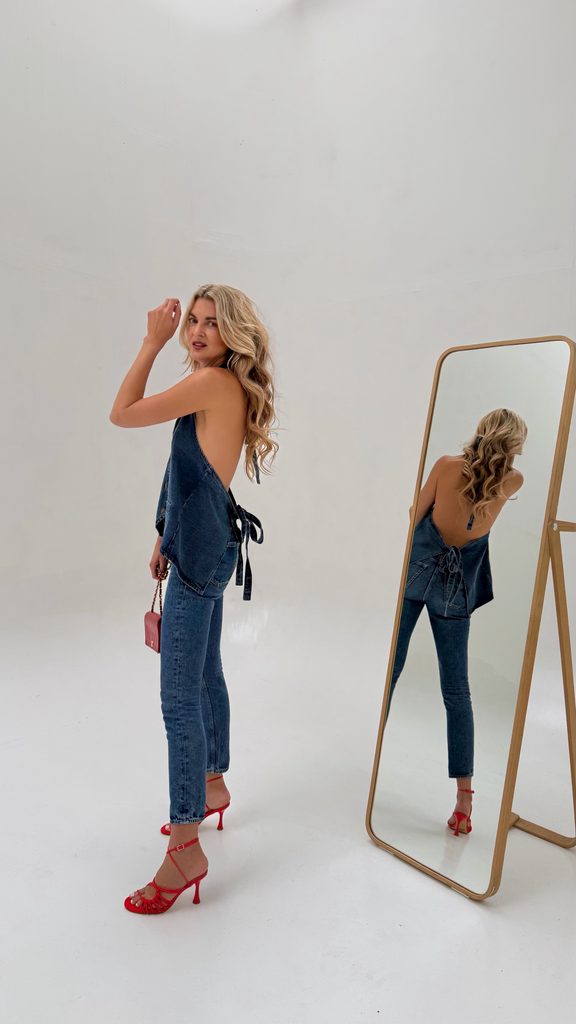 Denim Button-Up Top BeChick ❤ - Made with love