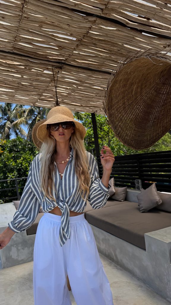 It also looks great with Cali pants, swimwear, or with a lace bralette.